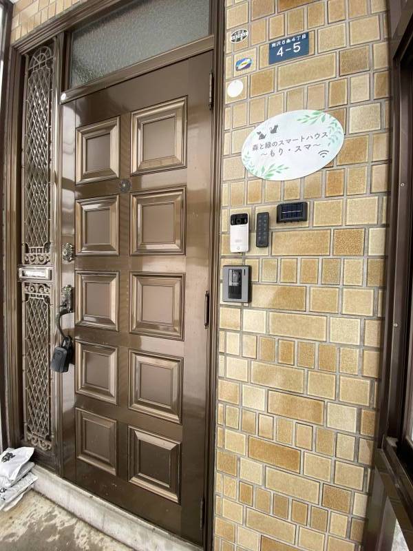 玄関はソーラーおよびセンサーライトで明るく玄関先を照らしてくれるので、夜に内見してみてください。