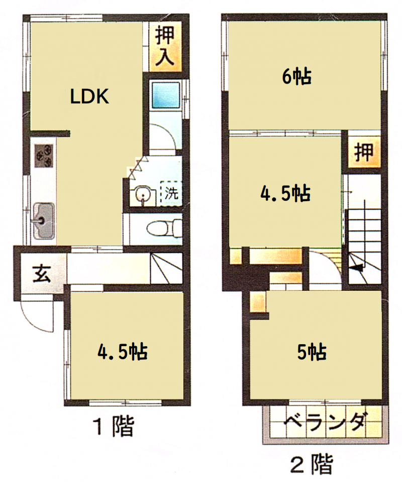 賃料:67,000円(管理費:0円) 敷金/礼金:敷金0/礼金0 間取り:4LDK(79.57m2)