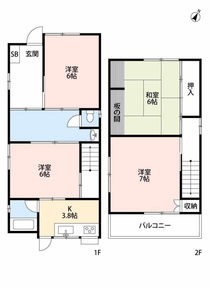 ▶間取り: 4K(洋室7帖+洋室6帖+洋室6帖+洋室6帖+キッチン3.8帖)