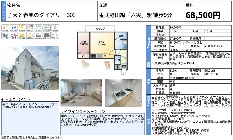 子犬と春風のダイアリー 303の設備や条件など詳しい概要です