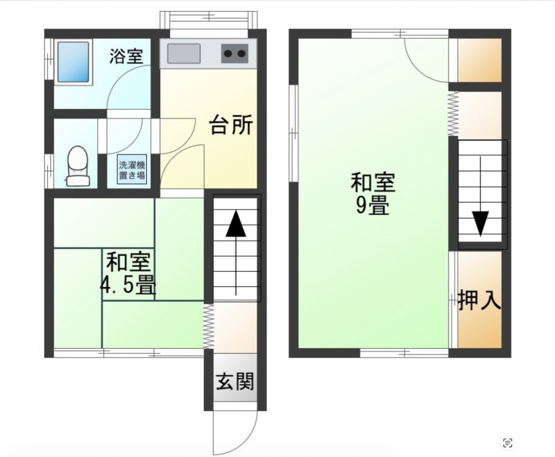 1階:DK4.5畳/2階:9畳の居室。2階建て感覚で使える希少な間取り!