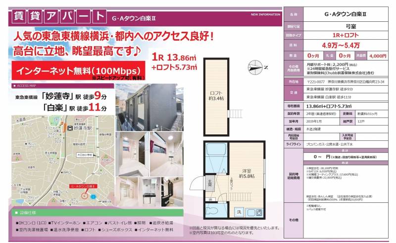 GAタウン白楽Ⅱ 103ロフト付初期費用なしの設備や条件など詳しい概要です