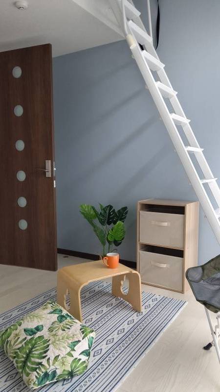 築浅ロフト付き&ブルーの壁紙に新品家電3点(2ドア冷蔵庫、洗濯機、電子レンジ)設置済み、快適でオシャレなお部屋で新生活がすぐにスタートできます!