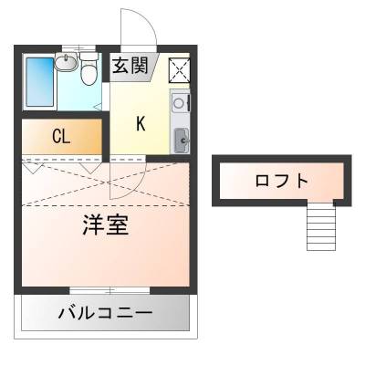 部屋設備・サービス | クローゼット / シューズボックス / 都市ガス / フローリング / バルコニー / ロフト付き / 室内洗濯機置場 |