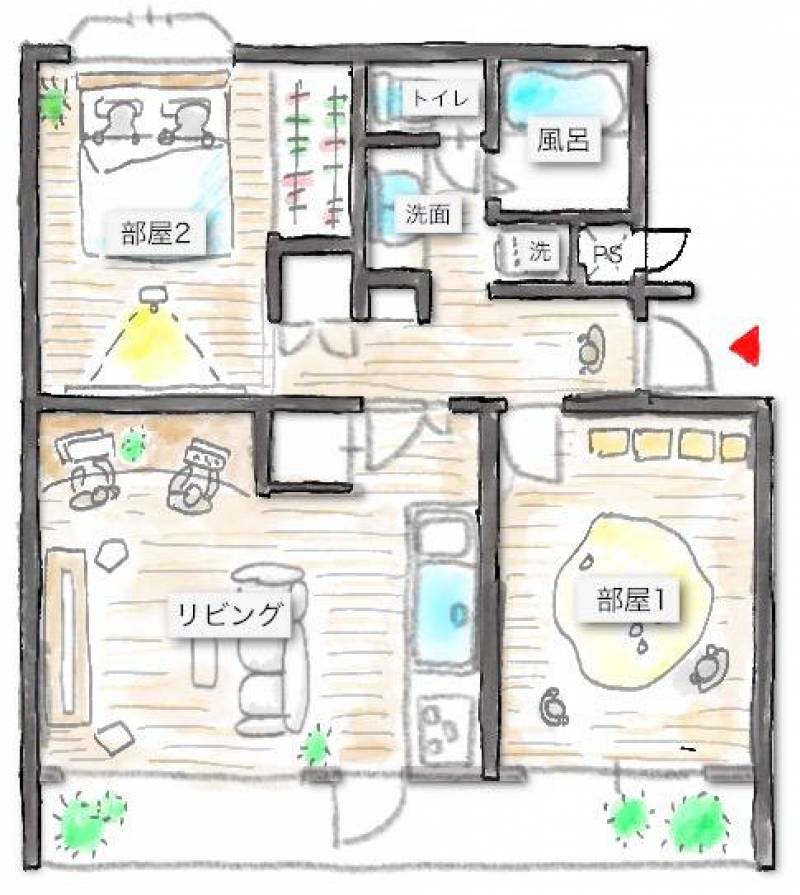 賃料:60,000円(管理費:0円) 敷金/礼金:敷金0/礼金1.1ヶ月 間取り:2LDK(55.70m2)