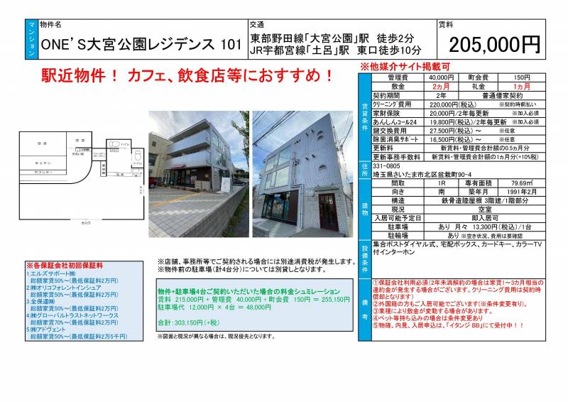 ONE’S大宮公園レジデンス 101の設備や条件など詳しい概要です