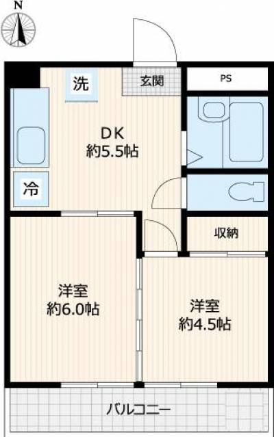 | 部屋設備・サービス | TVモニタ付インターホン / 二面採光 / 照明器具付き / シューズボックス / プロパンガス / バルコニー / 室内洗濯機置場 |