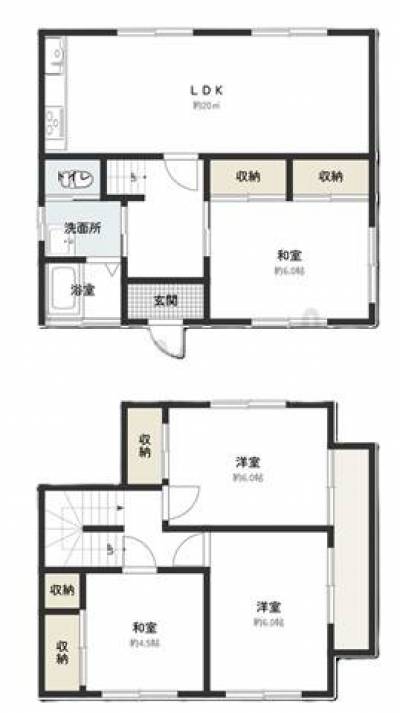賃料:60,000円(管理費:0円) 敷金/礼金:敷金1ヶ月/礼金1ヶ月 間取り:4LDK(83.26m2)