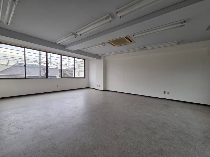窓が多く、日差しがたっぷり入る明るい室内。美容サロンや学習塾など、清潔感と開放感を大切にする業種に最適です。