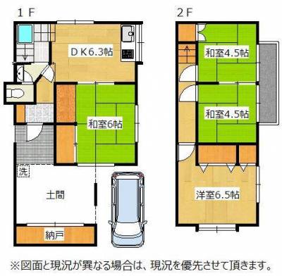 二階建て 1F(K6.3帖 和6帖) 2F(洋4.5帖 洋4.5帖 洋6.5帖)