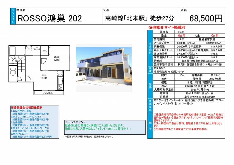 ROSSO鴻巣 202の設備や条件など詳しい概要です