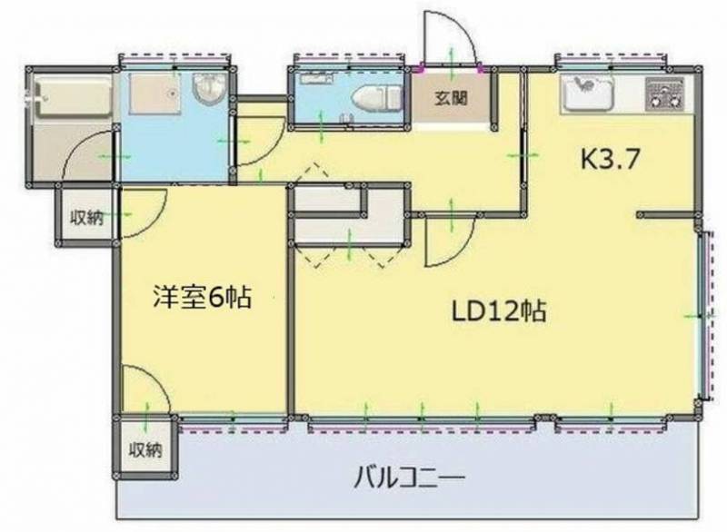 1LDK(洋6 LD12 K3.7/40m²)