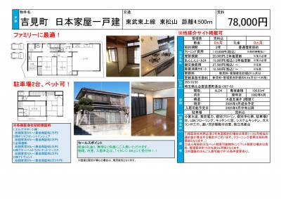 吉見町 日本家屋一戸建 の設備や条件など詳しい概要です