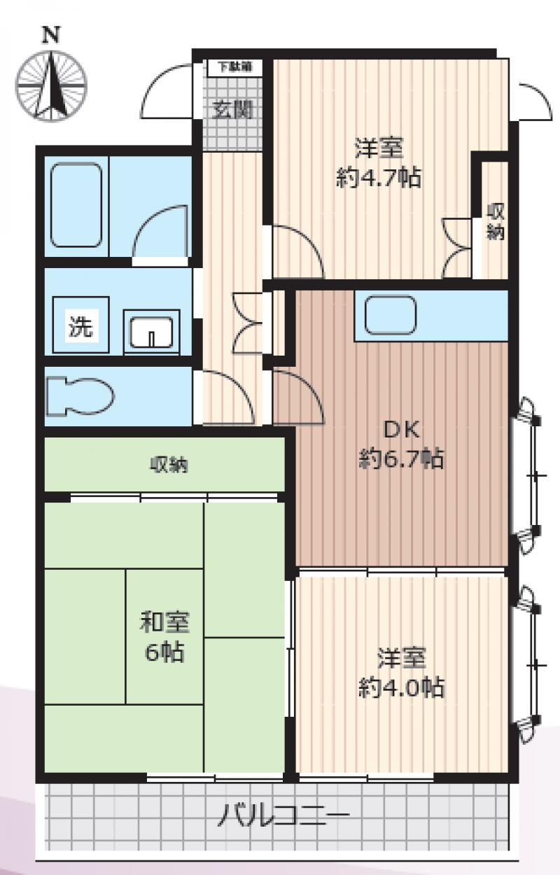 賃料:51,000円(管理費:2,000円) 敷金/礼金:敷金0/礼金0 間取り:3DK(58.95m2)