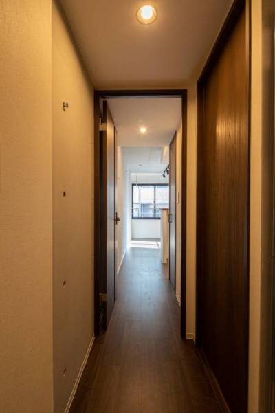 ・玄関扉もデザイン仕様! 内部階段や廊下には木目調シートを採用し、普通の物件にはない空間を演出!
