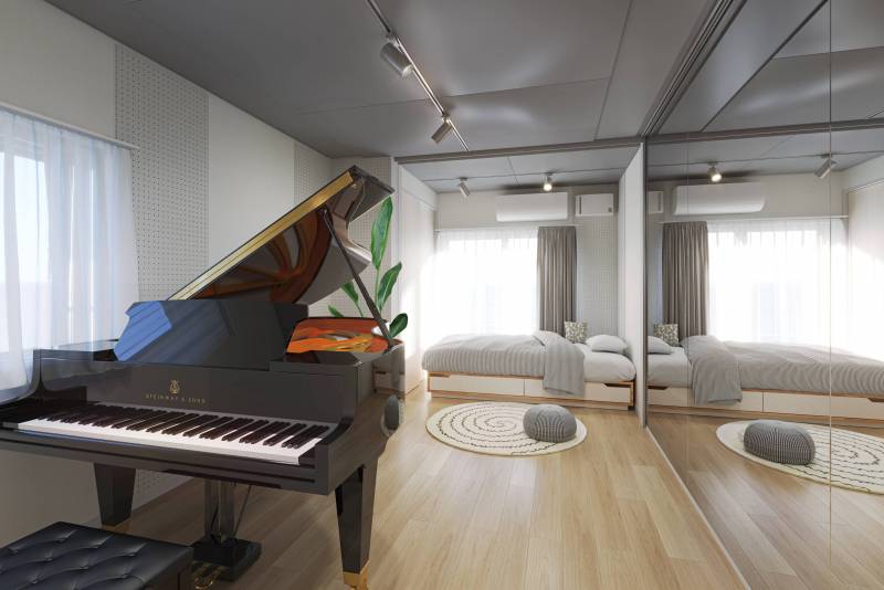 防音設備:三重防音ドア・三重サッシ・全熱交換型24時間換気装置等