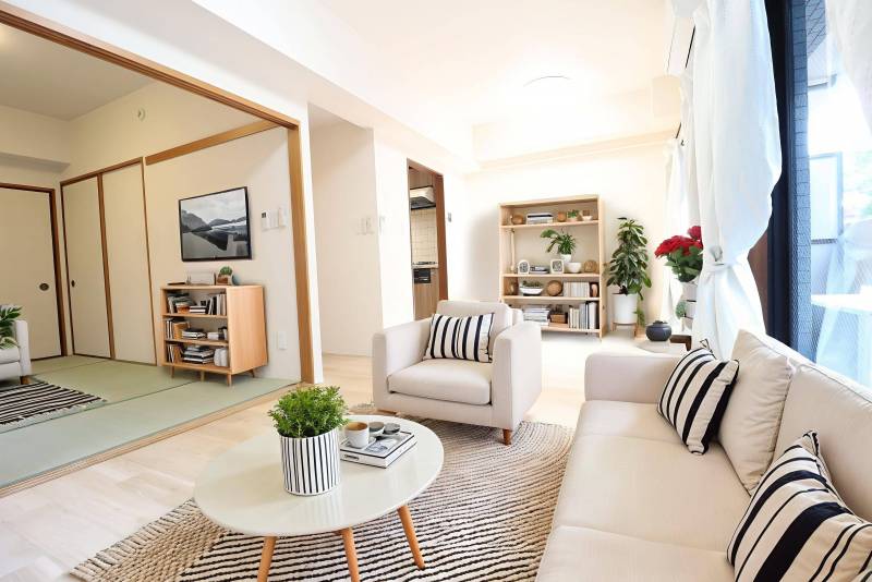 | 部屋設備・サービス | TVモニタ付インターホン / 二面採光 / クローゼット / 照明器具付き / シューズボックス / 都市ガス / フローリング / バルコニー / 室内洗濯機置場 |