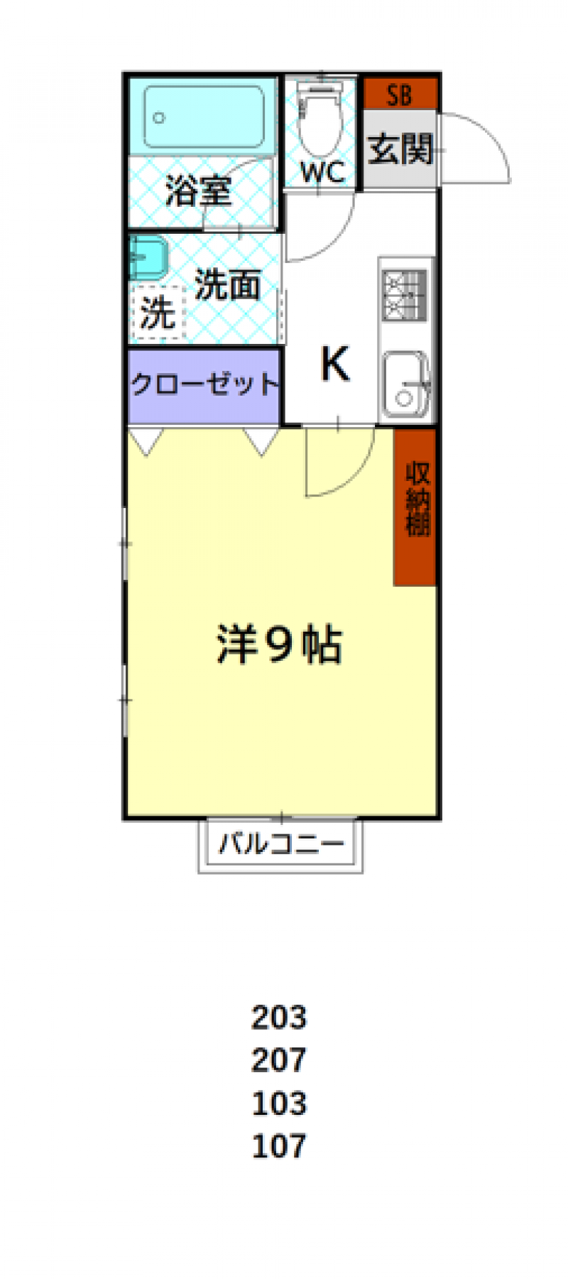 アパートメントビィワン 103の設備や条件など詳しい概要です