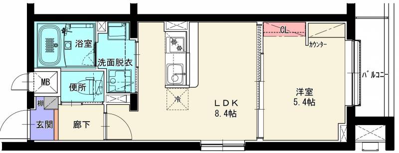 1LDK 31.84 ㎡+ベランダ 2.77 ㎡