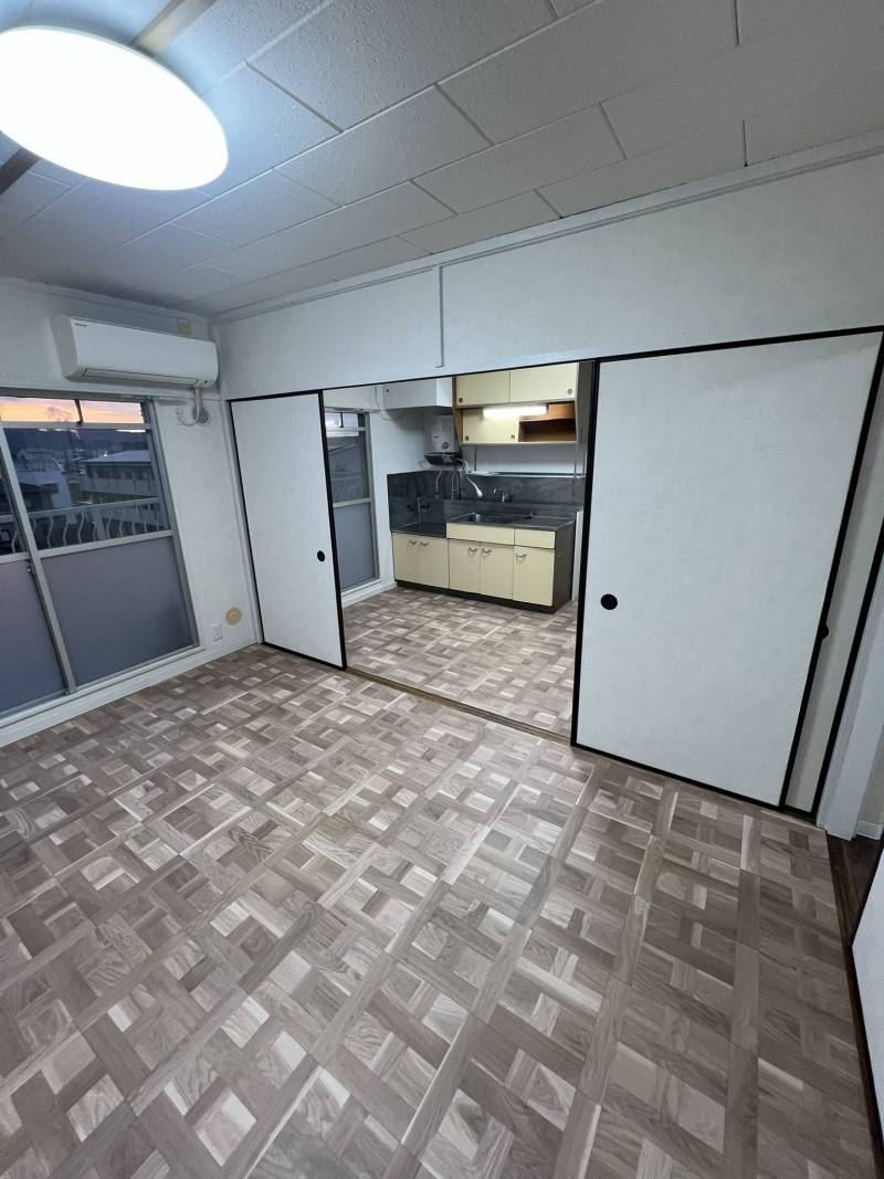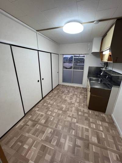 広々キッチン: 二口コンロ設置OK。クリーニング済みの使い勝手の良いキッチンで、毎日の自炊が楽しくなる空間です。