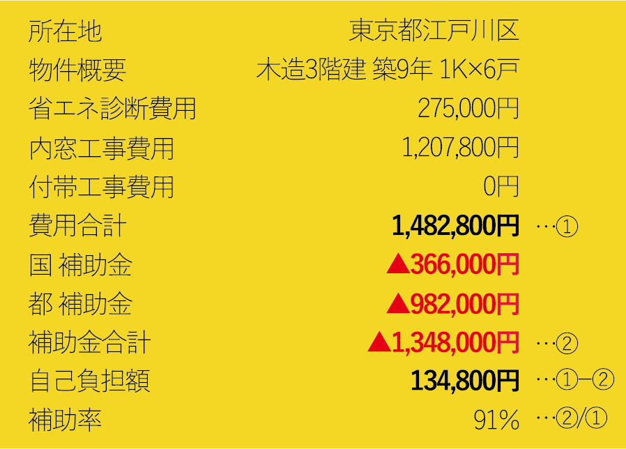 実例① 全室1Kで補助率が最大の91%に!