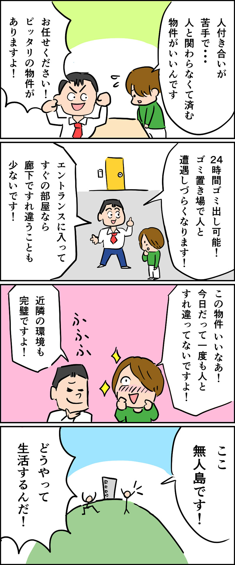 人付き合いを少なくするには、「人と顔を合わせにくい」物件を選びましょう!